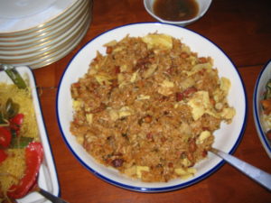 Así nació el popular Arroz chaufa que se sirve y vende en los Chifas (lugares de venta de comida china en Perú). Pues a este plato le surgió una variante hecha con cecina selvática y el resultado es estupendo. (Recomendamos combinarlo con una porción de tacacho)