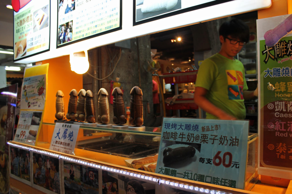Su nombre real es Gayke (así los puedes encontrar en Taipei) Son unas paletas de queque y llevan diferentes rellenos. No se puede decir que sean deliciosas, pero si que son particulares por la forma de pene que tienen. Las hay de diferentes colores.