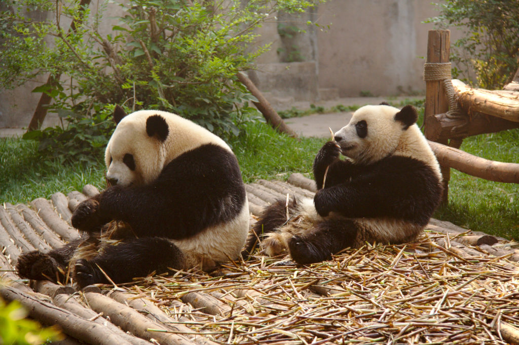 En este lugar que tiene una superficie de 70 hectáreas se pueden encontrar 120 pandas gigantes y unos 40 pandas rojos, el panda gigante es el que todos conocemos (colores blanco con negro) y consume 40 kilos de bambú al día. El panda rojo es más chico y parece un mapache.
