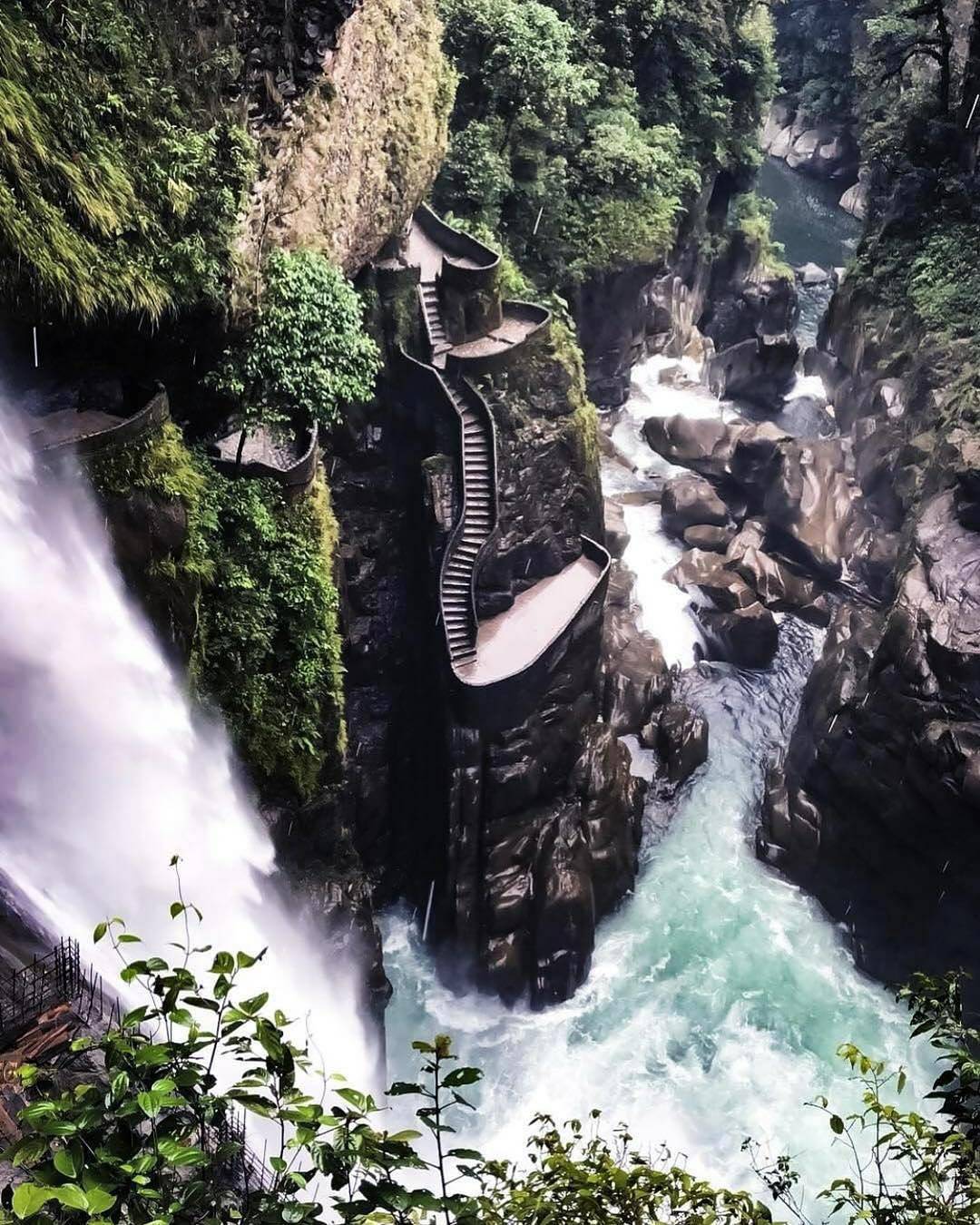 El Pailón del diablo es una de las cascadas del río Pastaza y es probablemente el salto de agua más popular de Ecuador. Se le llama de esta manera por la forma que tiene una de las rocas de la cascada (que si se mira desde un ángulo en particular parece el rostro del diablo).