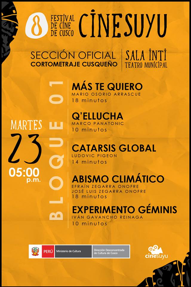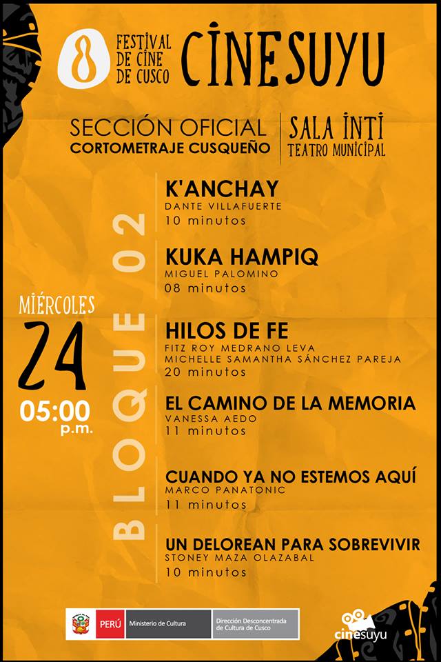 Cineyu es el nombre del festival de cine en Cusco, un evento que desde el 2011 promueve y difunde cortos y largometrajes de realizadores locales y nacionales, además motiva el intercambio de conocimiento y la reflexión. Esta vez llega su octava edición y de este modo el Festival de Cine Cinesuyu 2018, otorgará galardones a las categorías de largometraje de ficción, largometraje documental, Cortometrajes cusqueños; y Cinesuyu 48, respectivamente; la respuesta del sector cinematográfico nacional a la convocatoria ha sido positiva perfilando así al Cinesuyu a posicionarse como un festival de competencia nacional, y más adelante camino al Bicentenario, como un Festival Latinoamericano.