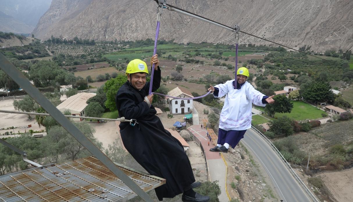 Estos curas se han convertido en la atracción del distrito de Santa Rosa de Quives (Perú), los turistas piden verlos volar y ellos aceptan felices. Aman la adrenalina y siempre antes de hacer canopy se persignan.