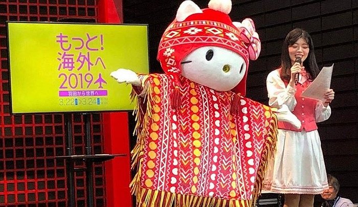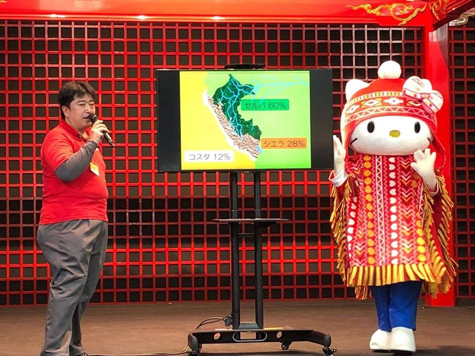 La popular mascota Japonesa se vistió con atuendos típicos peruanos y se unió a la promoción turística de Perú en Japón. Esto se llevó a cabo en el aeropuerto de Haneda,en Tokio, Japón y durante la presentación, se trató de brindar detalles de todas las ciudades del territorio nacional peruano. Decenas de japoneses y turistas de distintos destinos se conglomeraron durante esta guía.