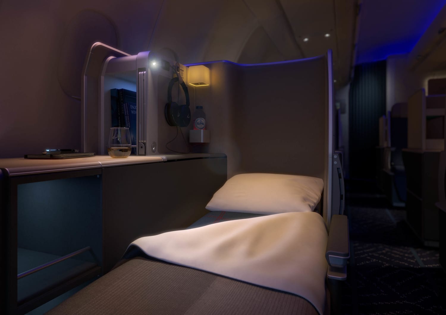 Oh bien. Bruselas no es la primera aerolínea en introducir un bar a sus negocios y cabinas de primera clase. A Emirates le encanta presumir de la barra completamente surtida en su avión A380. Korean Air llama a su versión el Celestial Bar. Los bares a bordo con iluminación rosada de Virgin Atlantic parecen un club nocturno en el cielo.