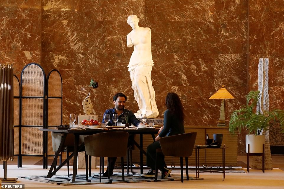 Dormirán en la famosa pirámide de cristal, que se ha transformado en un dormitorio, beben cócteles frente a la Mona Lisa y cenan en compañía de Venus de Milo.