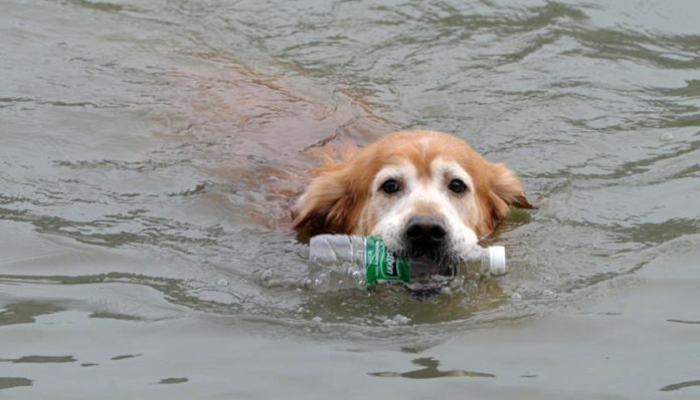 Este perro saca la basura de un río, demostrándonos que todos podemos hacer la diferencia para salvar al planeta.