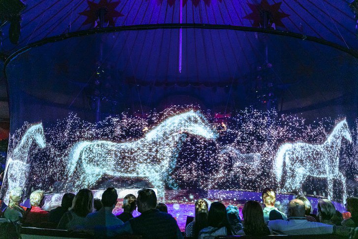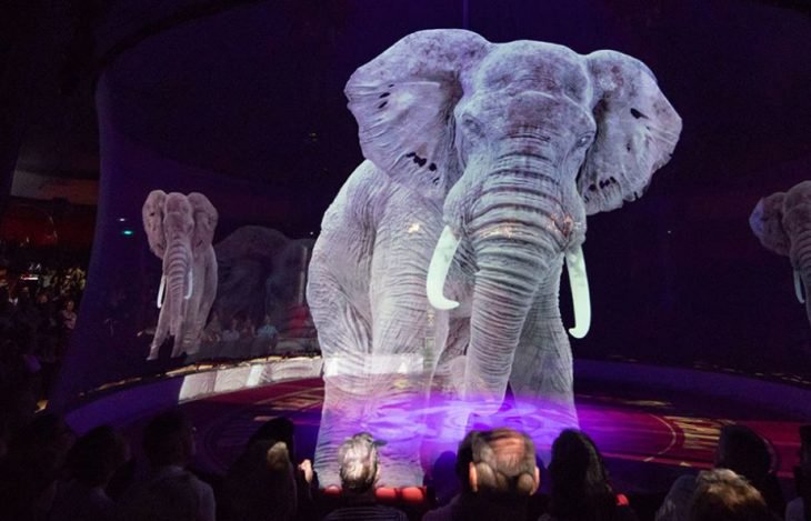 El circo existe desde hace muchas décadas, pero recientemente decidieron reemplazar a los animales por 11 proyectores, lásers y lentes situados de forma estratégica para ofrecer el espectáculo sin que se vea implicado ni un solo animal.