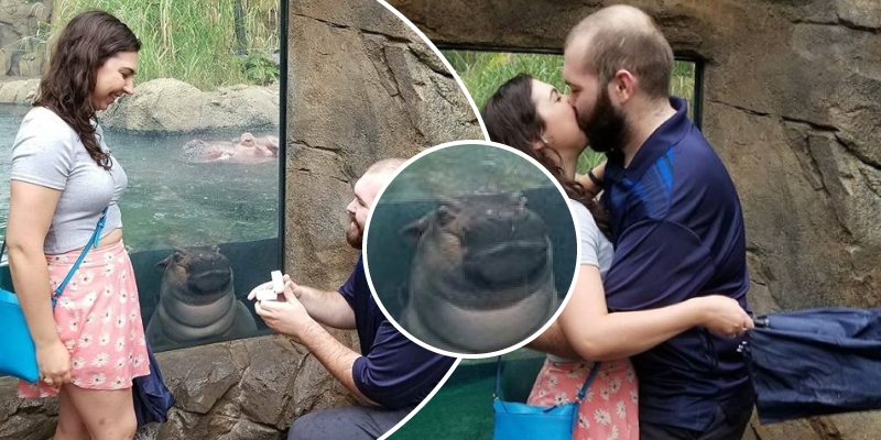 Hayley Roll y su novio Nick Kelble estaban en el zoológico para poder observar a la estrella de Internet, sucedió algo inesperado: Roll pregunta si le podrían tomar una foto junto al hipopótamo y cuando volteo su novio estaba arrodillado y con un anillo en mano. La propuesta fue hermosa, pero Fiona se ganó toda la atención.