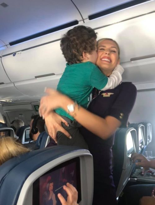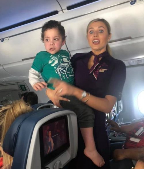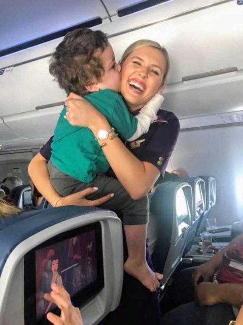 Parecía que no había solución y el viaje se antojaba infernal para todos. Hasta que llegó una azafata. La responsable de cabina pidió a Sonja permiso para coger al pequeño y, a pesar de las advertencias de la madre de que podría responder agresivamente, la azafata lo abrazó en alto.