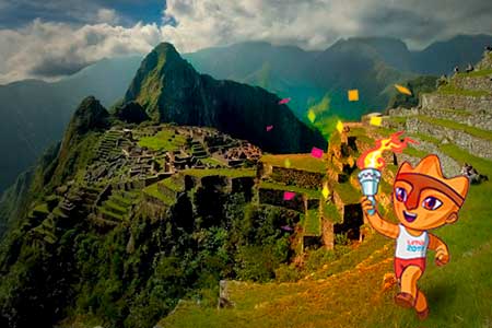 La antorcha de fuego, será encendida en Teotihuacán, México y se llevará hasta la ciudadela inca de Cusco, iniciando su trayectoria en Machu Picchu. Las otras importantes ciudades del país que recorrerá la antorcha serán: Arequipa, Cajamarca, el camino del Qhapaq Ñam en Cusco y Huancayo, las Líneas de Nazca en Ica, el Lago Titicaca en Puno, Piura, Tarapoto, Trujillo, entre otras por 23 días. 1200 personas en los variados destinos turísticos del Perú, irán en caballitos de totora, caminando, caballos de paso, hasta su llegada al Estadio Nacional en Lima el 26 de julio para la inauguración.