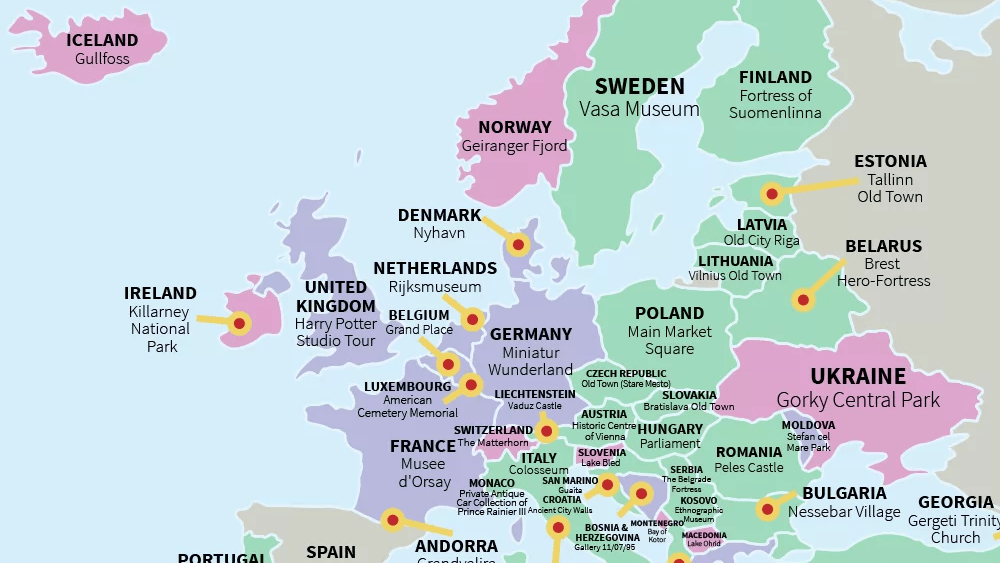 Lo llamativo fue que los creadores de esta idea tan maravillosa que fue crear el mapa con los destinos más visitados son las maravillas naturales, y se les ocurrió enumerar las más visitadas como: 54 atracciones históricas, 29 atracciones religiosas y 38 atracciones genéricas de turismo.