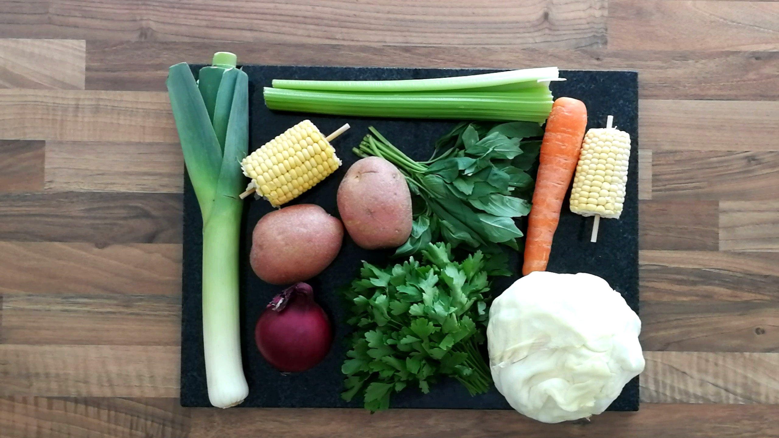 - Incorporar las verduras y bajar el fuego a media cocción. Añadir las papas y los fideos.