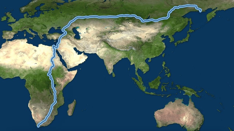 Joseph Pisenti tiene el canal de Youtube Real Life Lore. Recientemente ha publicado un nuevo video explicando «brevemente» cómo viajar la distancia más larga para caminar de un punto a otro Mundo. Esta caminata de 23,000 kilómetros comienza en L’Agulhas en Sudáfrica y termina en Magadan, Rusia. Según sus estimaciones, ¡tomaría alrededor de tres años terminar este viaje! Este curso también plantearía algunos problemas notorios, especialmente al cruzar muchas fronteras. Y hasta ahora, el desafío aún no ha sido cumplido por nadie. Joseph agrega en su video: