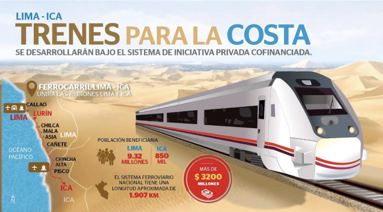 El Ministerio de Transportes y Comunicaciones (MTC) informó que la ejecución del proyecto para construir el ferrocarril que una Lima e Ica se ejecutará bajo el mecanismo de Asociación Pública Privada (APP).