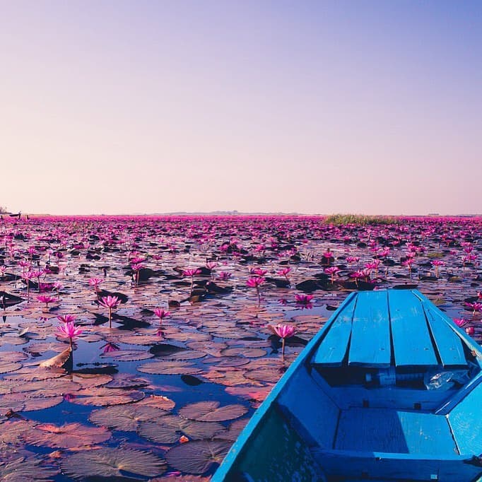 Este lugar es llamado ‘’Mar de lotos rojos’’, se encuentra en Tailandia y es un paisaje simplemente fantástico.