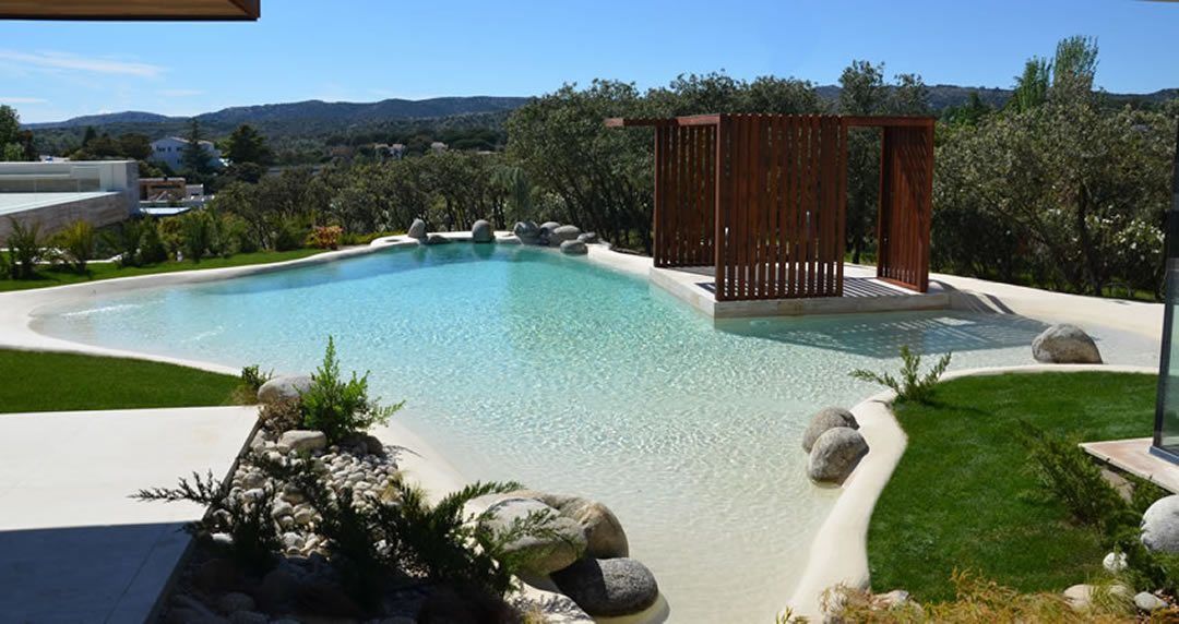 Cada vez es más habitual la construcción de piscinas en las viviendas, y unas de las más espectaculares son las de arena y las de hormigón, que simulan una laguna natural o una playa. Rodeadas por rocas, son muy fáciles de mantener limpias al estar fabricadas de materiales como la arena compacta o el hormigón gunitado. Con utilizar una máquina de agua a presión para limpiar las paredes, basta. Para mantener el agua limpia, los cuidados son exactamente iguales que los de una piscina tradicional. Se trata de una clase de piscina muy higiénica.