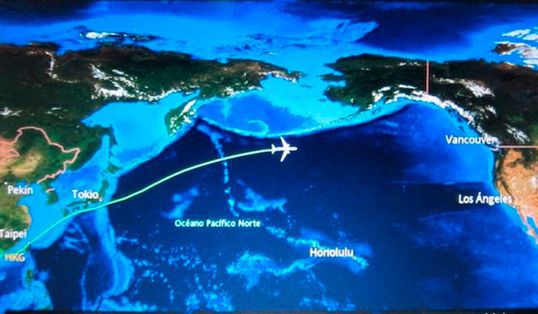El vuelo duró apenas 4 horas y media, y tanto el lugar de despegue como el de aterrizaje están cerca de la línea internacional de cambio de fecha, también conocida como Antimeridiano.