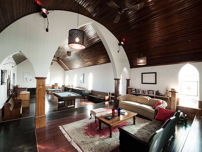 La iglesia original fue construida hace 100 años, y ahora sirve como una escapada de lujo para hasta 12 personas. Se encuentra cerca de una playa en Ontario, Canadá, y cuenta con comodidades como una mesa de billar y un futbolín.