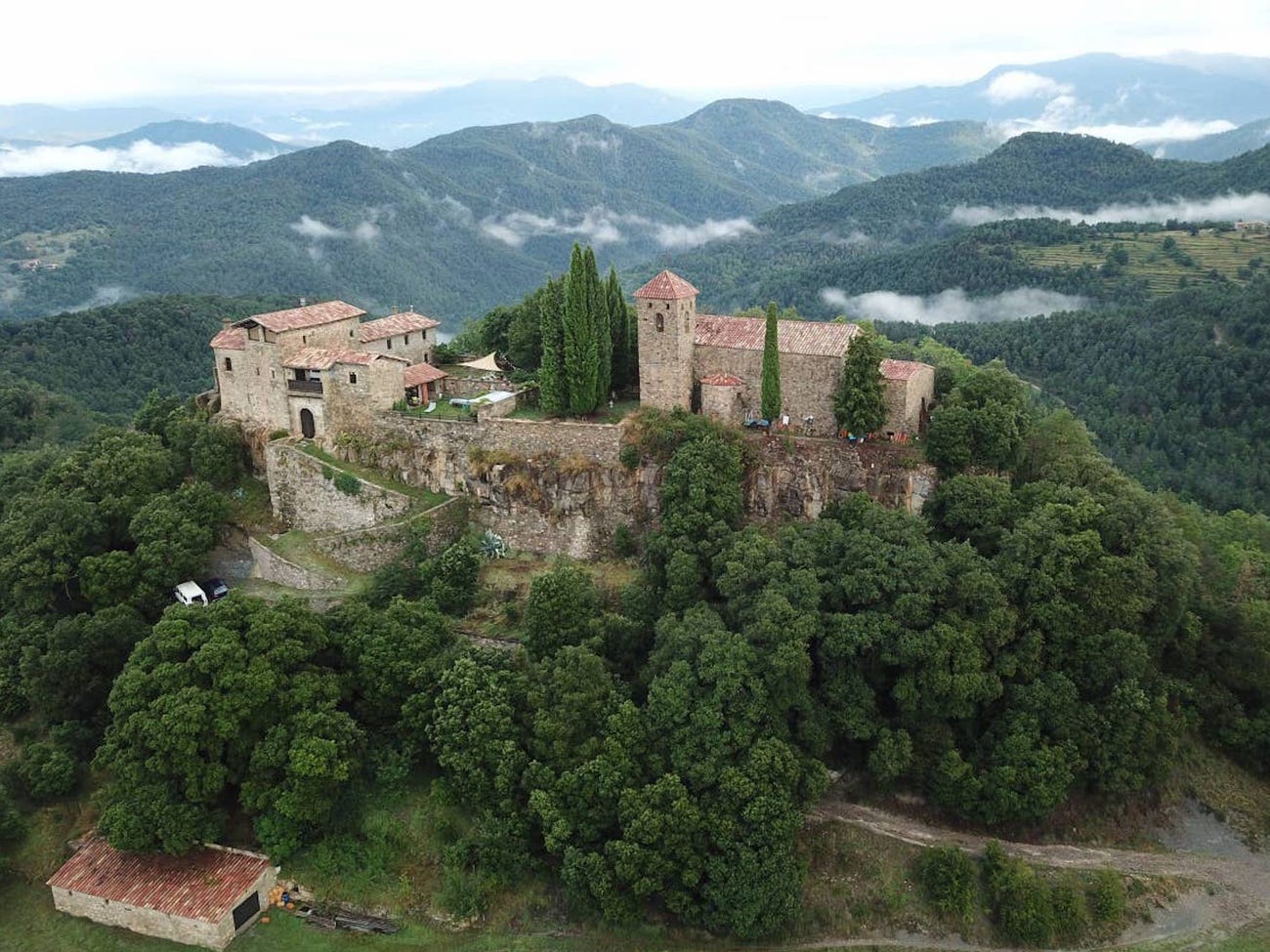 Ubicado en Llaés, Girona, España, este castillo conserva su encanto medieval, con un sistema de poleas que levanta el equipaje para los huéspedes. La casa puede dormir más de 16 invitados, por lo que puede acomodar grandes fiestas.