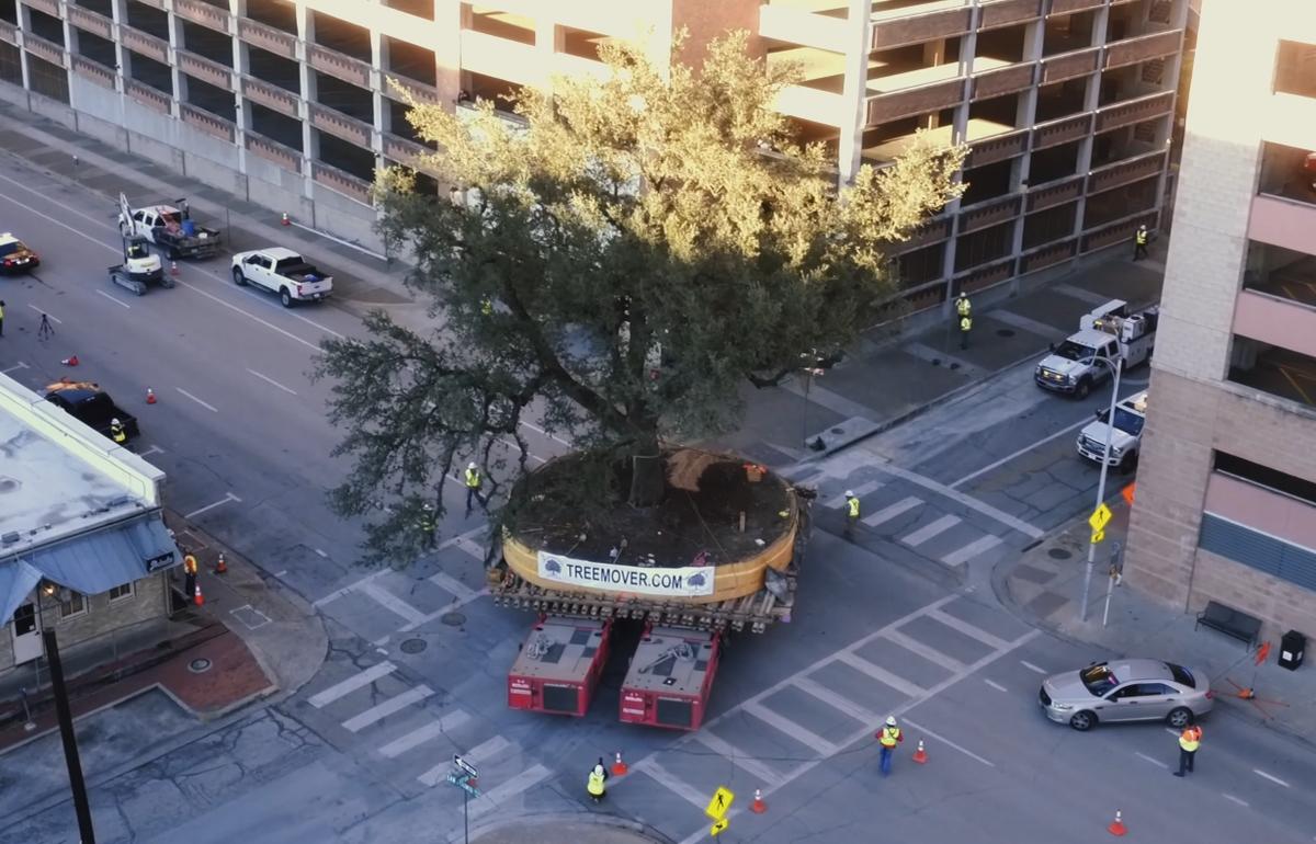 En este vídeo podemos ver cómo Enviromental Design traslada un roble de más de cien años de antigüedad, con un tronco de más de un metro de grueso y más de 150.000 Kilos, por las calles de la ciudad de Austin (Texas), en Estados Unidos: