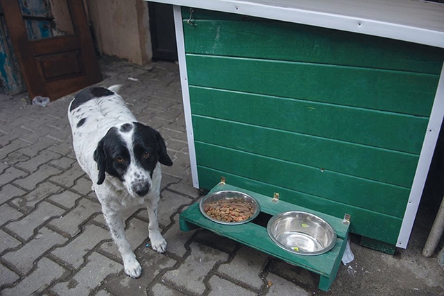 Kupata vive en el portal de una de las viviendas locales de la zona y ayuda a los niños a transitar por la calle con seguridad y bien podríamos decir que se ha convertido en una de sus tareas favoritas.