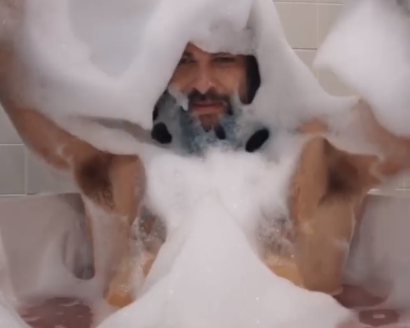 Sin ropa, mojado, y jugando con burbujas es como podemos ver al protagonista de “Aquaman” disfrutando de un baño en la tina «Jason Momoa se ve muy cómodo en casa», y las pistas continúan, sin embargo podemos ver el logo de una marca y de esta edición del Super Bowl.