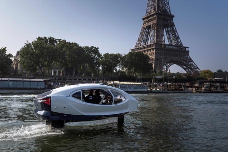 Llamados «Sea Bubbles», estas embarcaciones aerodinámicas blancas, sobrevolaron el río Sena a una velocidad de hasta 30 km/hora, flotando a unos 50 centímetros sobre el agua.