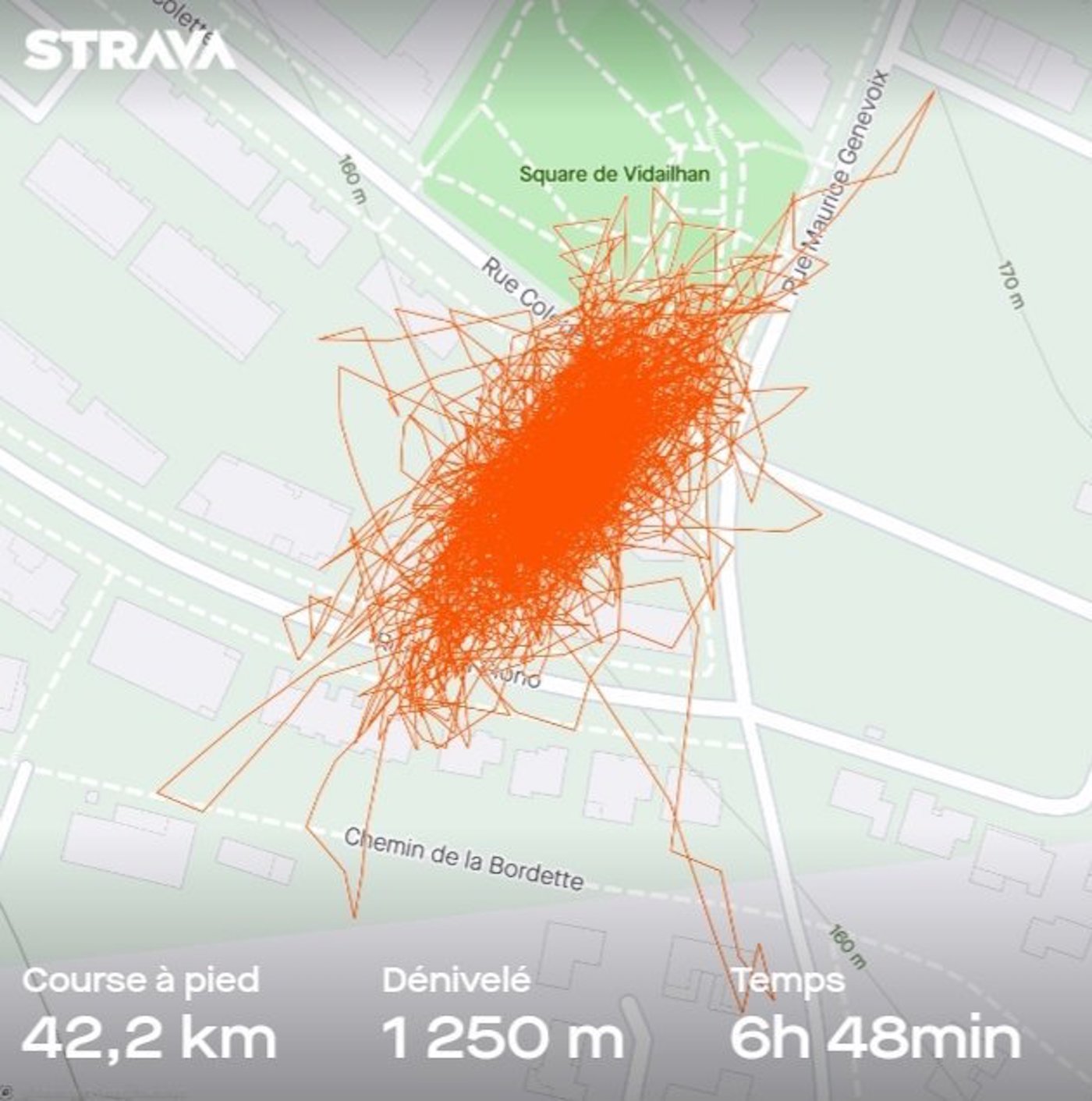 En total, Eliseo realizó más de 3.000 viajes de ida y vuelta, obviamente haciendo todo lo posible para minimizar los pasos en las curvas para evitar ampollas. Con la ayuda de la aplicación Strava, el deportista incluso registró la evolución de su curso en un mapa: este último se enamoró por completo de este curso improbable, de ahí las características que parecen dejar el apartamento en el mapa (Ver foto a continuación).
