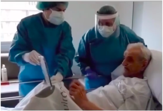 Miles de pacientes infectados con COVID-19 en España se encuentran internados sin tener comunicación con sus familiares o amigos. Pero, en el hospital El Pilar de Barcelona, unanciano pudo hablar con su esposa a través de una videollamada, mientras se recupera del coronavirus.