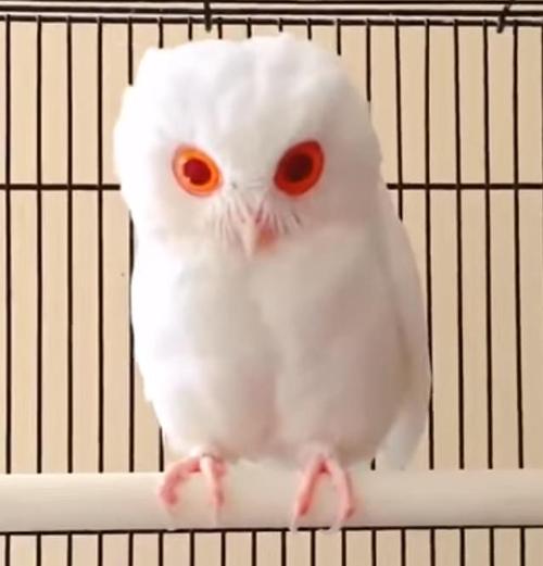 Los búhos chillón son generalmente de color gris o marrón oxidado, pero debido al albinismo, este ave en particular carece de melanina para producir color. Como resultado, parece que luce una bata blanca.