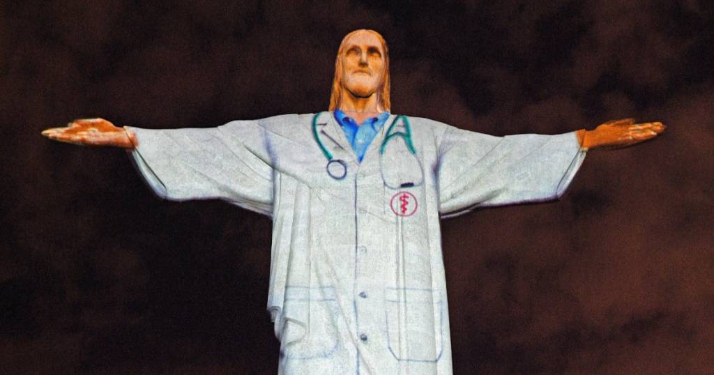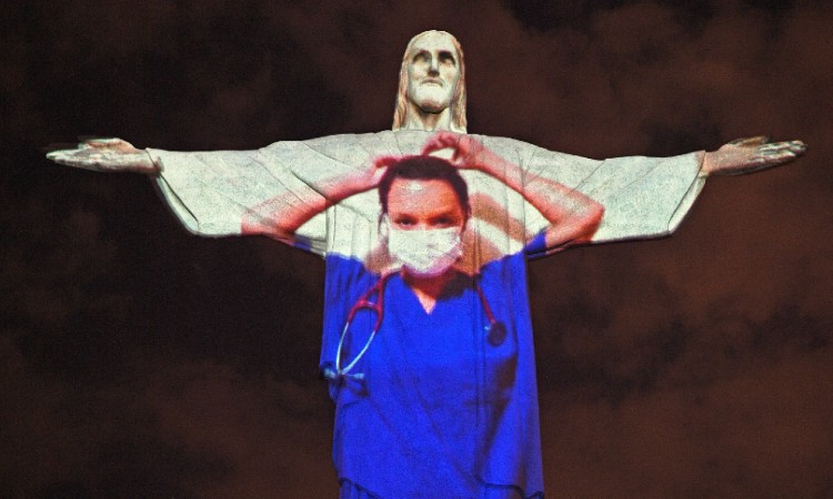 La famosa estatua del Cristo Redentor de Brasil se iluminó para parecer un médico el pasado domingo de Pascua, en homenaje a los trabajadores de atención médica de primera línea que luchan contra la pandemia del coronavirus en todo el mundo.