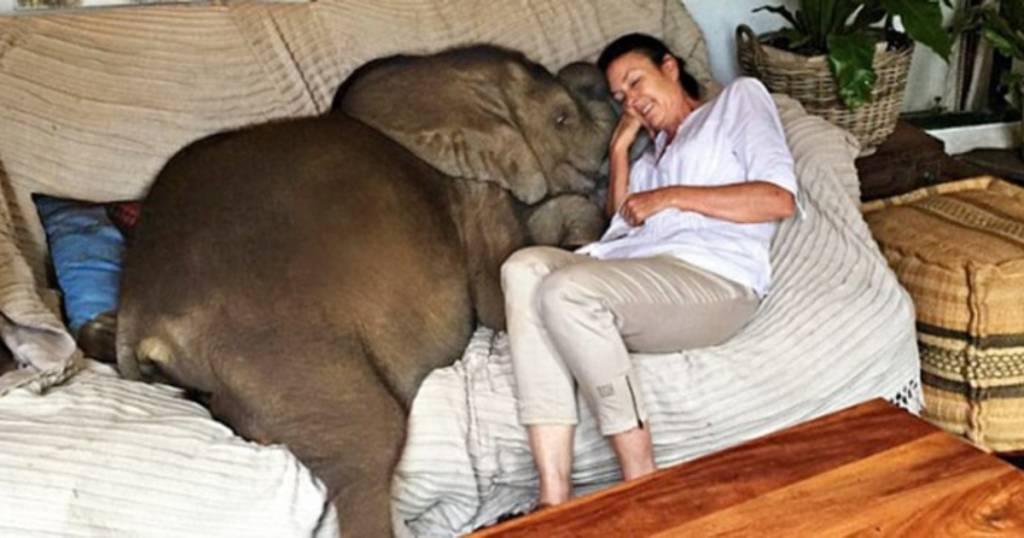 El joven elefante la ve como una madre e incluso la obliga a dormir junto a él, pero cuando todo mejore deberá volver a la naturaleza.