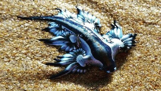 Se trataba del dragón azul, una pequeña criatura marina poco conocida que ha llamado la atención de los expertos en vida silverstre en Texas, después de que varios visitantes de la playa informaron haberlos encontrado en las orillas del Parque Island National Seashore.