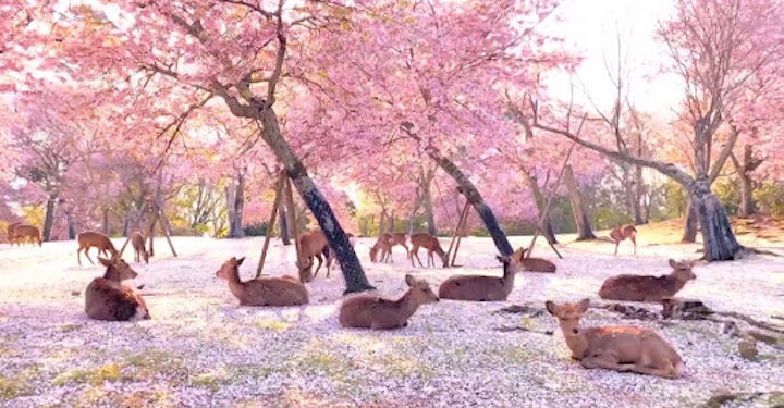 El Parque Nara, ubicado en la ciudad de Nara, al sur de Japón, es famoso por sus más de 1.200 venados. Este parque recibe miles de visitas de turistas de todo el mundo cada año, sin embargo, por primera vez, la reserva ha recuperado la paz a causa del confinamiento por el coronavirus. Algunos ciudadanos decidieron dar un paseo por el parque y lo que encontraron fue una imagen idílica de docenas de ciervos descansando bajo los cerezos en flor. Una escena que generalmente no ocurre, precisamente debido a la inmensa multitud de visitantes que vienen a ver a los animales y alimentarlos.