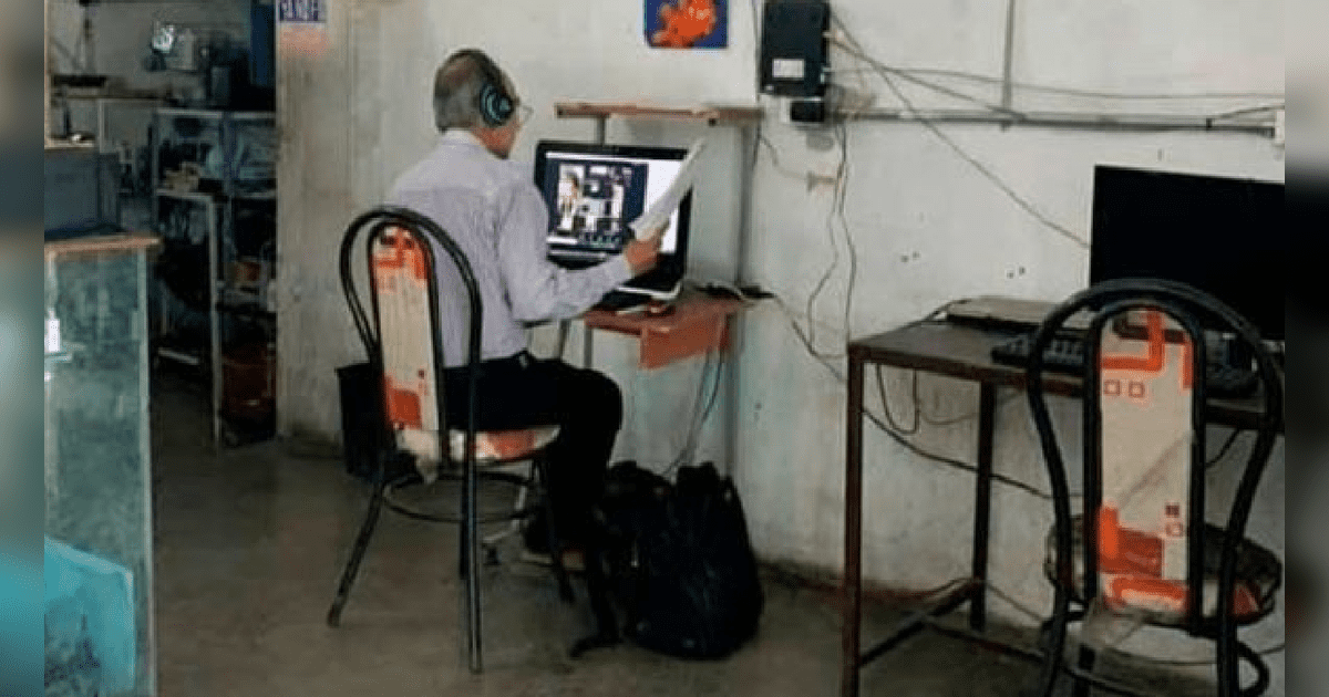 Pero, ¿Qué pasa con aquellos que no tienen una computadora en sus casas? Una foto se hizo viral, con un profesor de Puebla (México) donde se enceuntra en un ciber impartiendo sus clases virtuales.